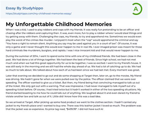 Memories Essay Example - They shape our character as the entirety of our insight and past encounters are put away there. Childhood memories are the recollections of experiences, people, and events from our early years. What was your favorite game with your siblings. A reflective essay on childhood memories can be. Discover 101 unique and engaging memory essay topics and examples to spark your.